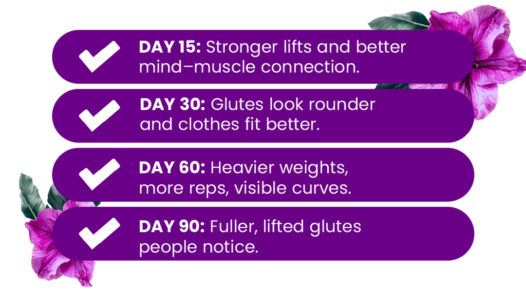 Most women feel stronger and more energized within the first week, and start noticing visible toning and firmness between weeks 2 and 4.